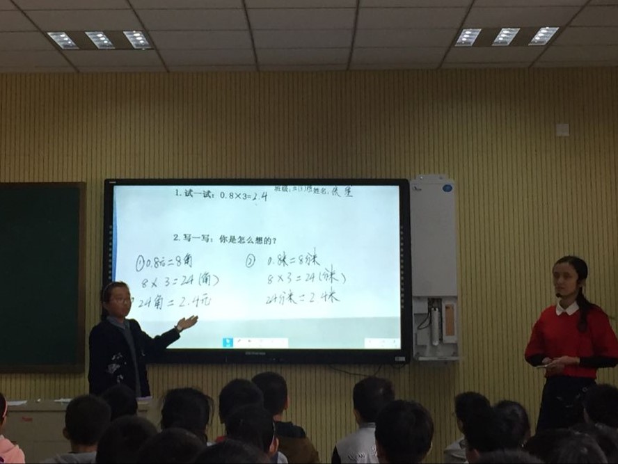 11月9日,五年级组张颖老师在学校阶梯教室执教校级数学教研课《小数乘整数》。