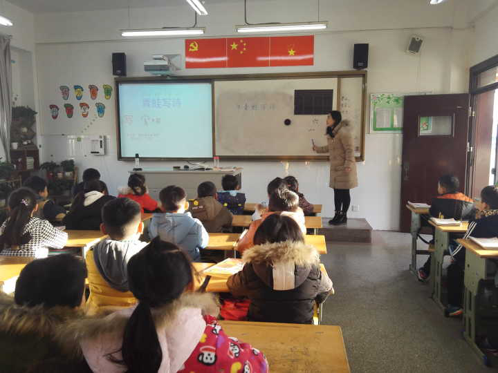 为提升教师专业素养,提高教师教育教学水平,促进教师相互学习、相互交流,学校鼓励每一个教师、每一学期至少上一节组内或者校级课。胡晓琴老师于12月5日在一14班完成了本学期的组内研讨课。她执教的是《青蛙写诗》这篇儿歌,进行的是第一课时的教学。依据儿童心理特点,本课教学设计采用多种形象直观的教学手段,创设丰富多彩的教学情境,结合学生的生活经验,引导学生运用多种方法识字,抓住各种机会主动识字,做到识用结合。同时依据教材图文并茂,内容活泼形象的特点,结合学生年龄特点,以富有情境的图画,多种形式的朗读为载体,激发学生阅读的兴趣,发展学生的语言,启迪孩子的灵性!呈现了一堂生动有效的课堂。