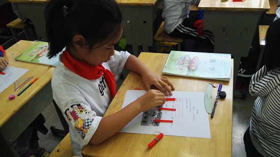 下午第一节课,全体教师在二12班聆听了王海荣老师的课堂教学《乘法的初步认识》。王老师首先通过摆圆片向学生呈现了两个问题,一个是求不同加数的和,一个是求相同加数的和,学生基于课前对乘法已有的了解对后一个问题提出了加法算和乘法算两种方法。在此基础上,老师让学生继续运用摆圆片的方法,摆出能用加法和乘法两种方法解决的问题,并组织小组讨论、全班交流。在生生互动、思维碰撞中,学生对乘法的含义由模糊逐渐走向清晰。接着,王老师采用逆向思维练习,让学生根据算式摆圆片,让学生发现一个加法算式对应一种摆法,而一个乘法算式则可能对应两种摆法,丰富了学生对乘法的理解。接下来,王老师带领学生走进生活,让学生根据生活情景图,说出“每份有几个,有几份,一共有多少”,并列出乘法算式,让学生在应用中深化了对乘法的理解。