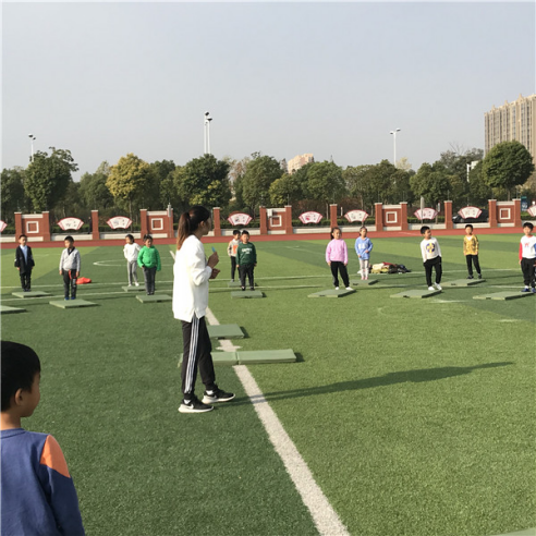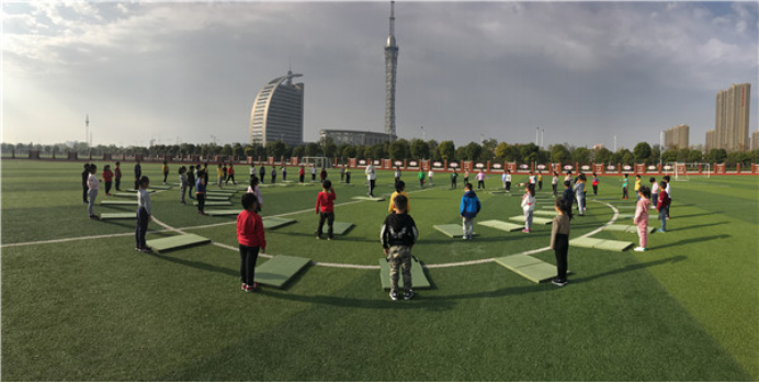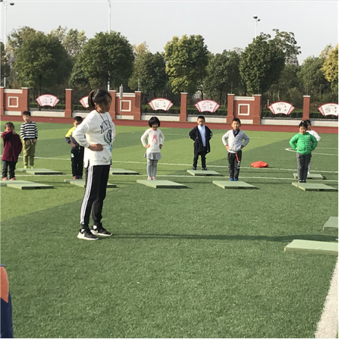 前滚翻是水平一小学一年级的教学内容,它在日常生活中是一种自我保护帮助的方法,也是小孩子比较感兴趣的内容。10月25日上午,殷老师在操场上执教了一节校级公开课《前滚翻》。