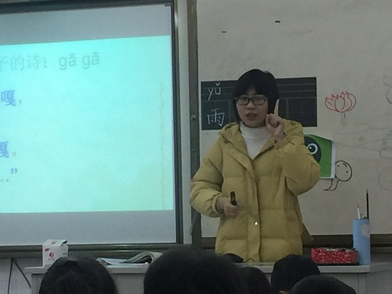2018年12月4日,一年级一班的汤佳敏老师在班上执教了《青蛙写诗》。课文《青蛙写诗》生动活泼,通过小蝌蚪、水泡泡、荷叶上的一串水珠等形象让小朋友们认识了逗号,句号和省略号。