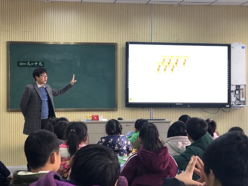 12月28日上午第二节课,一年级数学组李鑫老师指教了校级教研课《9加几》,这节课的内容是建立在学生已经学习了 20 以内数的认识, 10 以内的加法的基础上进行的。它将为后面继续学习百以内加法及笔算等知识奠定基础。一年级学生生性活泼、好奇心强、思维活跃,解决问题的方式不受成人思维的影响,因此李老师创设了去数学王国闯三关的有趣数学情境,还精心准备了学具,鼓励学生通过多种方法解决问题,体现了算法的多样性,为本课探讨算法的学习提供了丰富多彩的思考方向。孩子们在说一说、摆一摆、圈一圈、写一写的过程中充分理解“凑十”的道理,体会“凑十”的方法,取得了较好的教学效果。