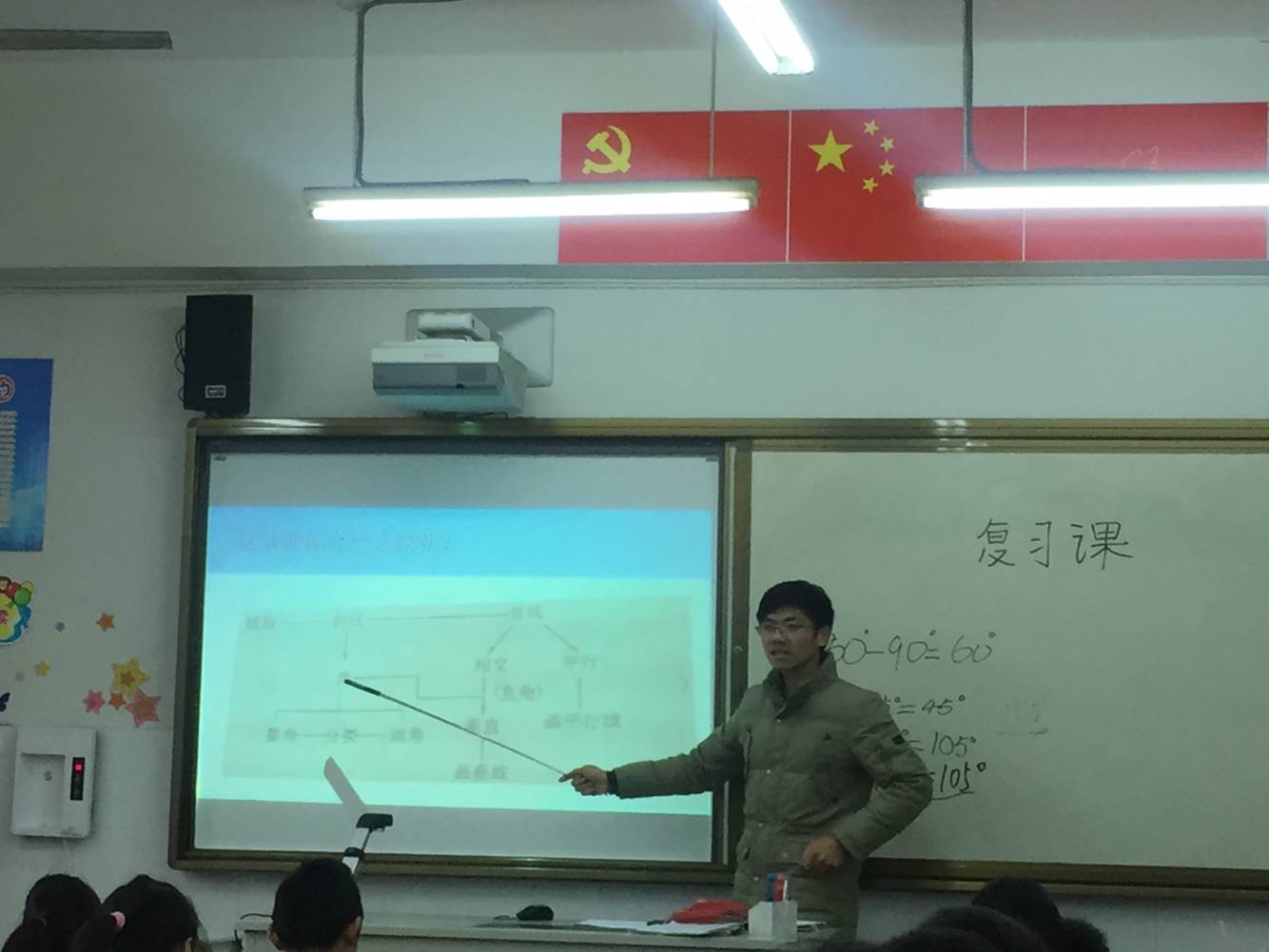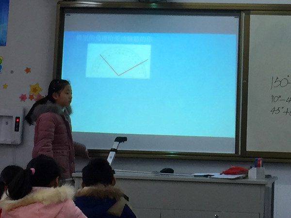 2019年1月9日,四年级部谢晶晶老师执教了一节组内课《第八单元(复习)》。让学生理解三线的异同点。从三线出发建立了本单元的结构。通过线段认识到连接两点的线段长度是这两点间的距离,解决了两点间的移动问题。接着复习了射线,从一点出发的两条射线可以组成角,角的复习内容主要有角的度量和角的分类。学生在通过定标准、去测量、得结果思路找到了度量方法,通过两点对齐、两线对齐、从0开始就能准确的度量角度的大小。最后通过分类重新回忆了两条直线的位置关系,用幽默风趣的语言让孩子们在快乐的氛围中学习。