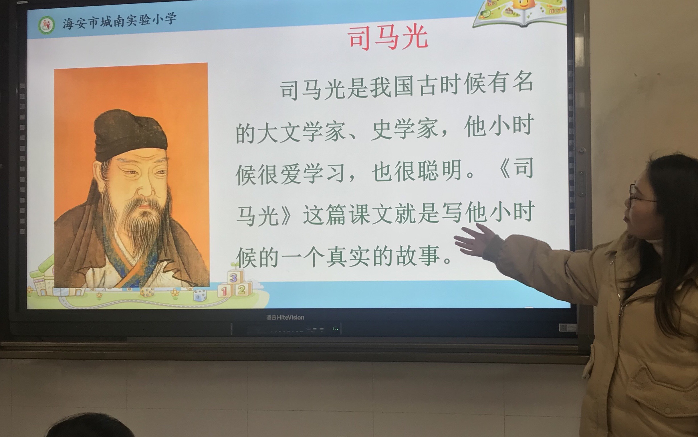《司马光》是统编教材三年级上册第八单元的一篇文章。对话单元导语,知道了本单元的人文主题是“美好品质”。对话课后习题:跟着老师朗读课文,注意词句间的停顿,背诵课文;借助注释,用自己的话讲一讲这个故事;这篇课文和其他课文在语言上有什么不同?对话学生,这是统编教材呈现的第一篇小古文,应让学生感受小古文的特点。