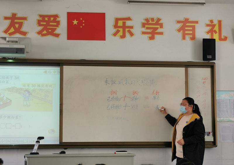 4月26日上午第三节课,东校区低数组的老师们齐聚一(22)班,一起聆听了卢月琴老师执教的组内课《求被减数的简单实际问题》。