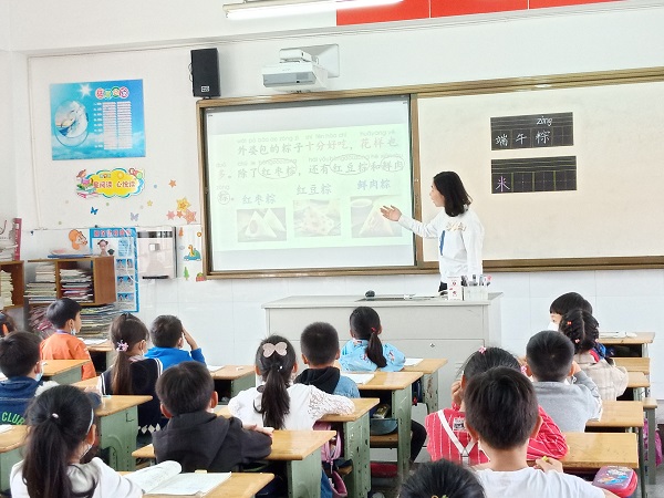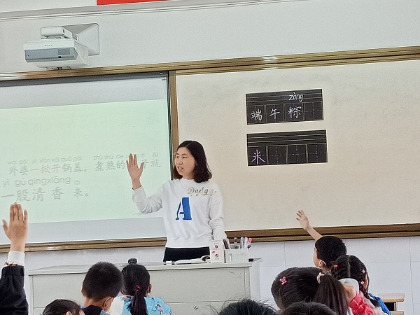 5月15日上午,一年级语文教研组周丽娟老师在一(13)教室执教组内教研课《端午粽》。