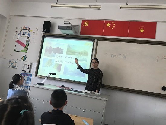 周宏凤老师执教组内教研课《神州谣》 发布时间:2020-05-18 00:00:00 浏览次数: 次 【字体:小 大】 5月18日,周宏凤老师在二8班教室执教组内教研课《识字1·神州谣》。《神州谣》是一首篇幅短小却内涵丰富的歌谣,气势恢宏,赞美了中华民族历史悠久,文化灿烂,山川壮美,风景如画,表达了中华儿女盼望祖国统一,为祖国繁荣昌盛共同奋斗的愿望。二年级学生,已经掌握了一些识字方法,具有一定的独立识字能力。课堂上放手让学生个性化识记生字,有利于激发学生积极的学习兴趣。歌谣类的课文朗读起来朗朗上口,通过反复诵读,让学生体会“奔、涌”等词语的表达效果,从而感受祖国山河的壮美。 分享到: 【打印正文】
