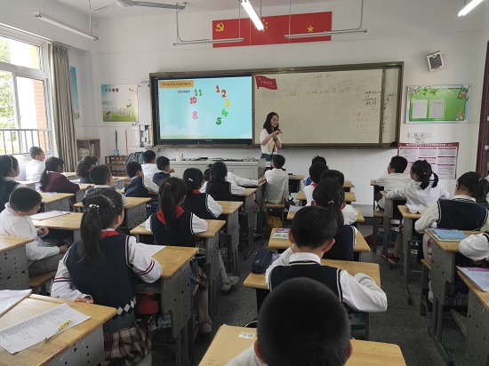 崔婷老师在三(8)班教室执教组内研讨课:三年级Unit6 What time is it? 第一课时,三年级英语组所有老师们参与了听课和研讨。