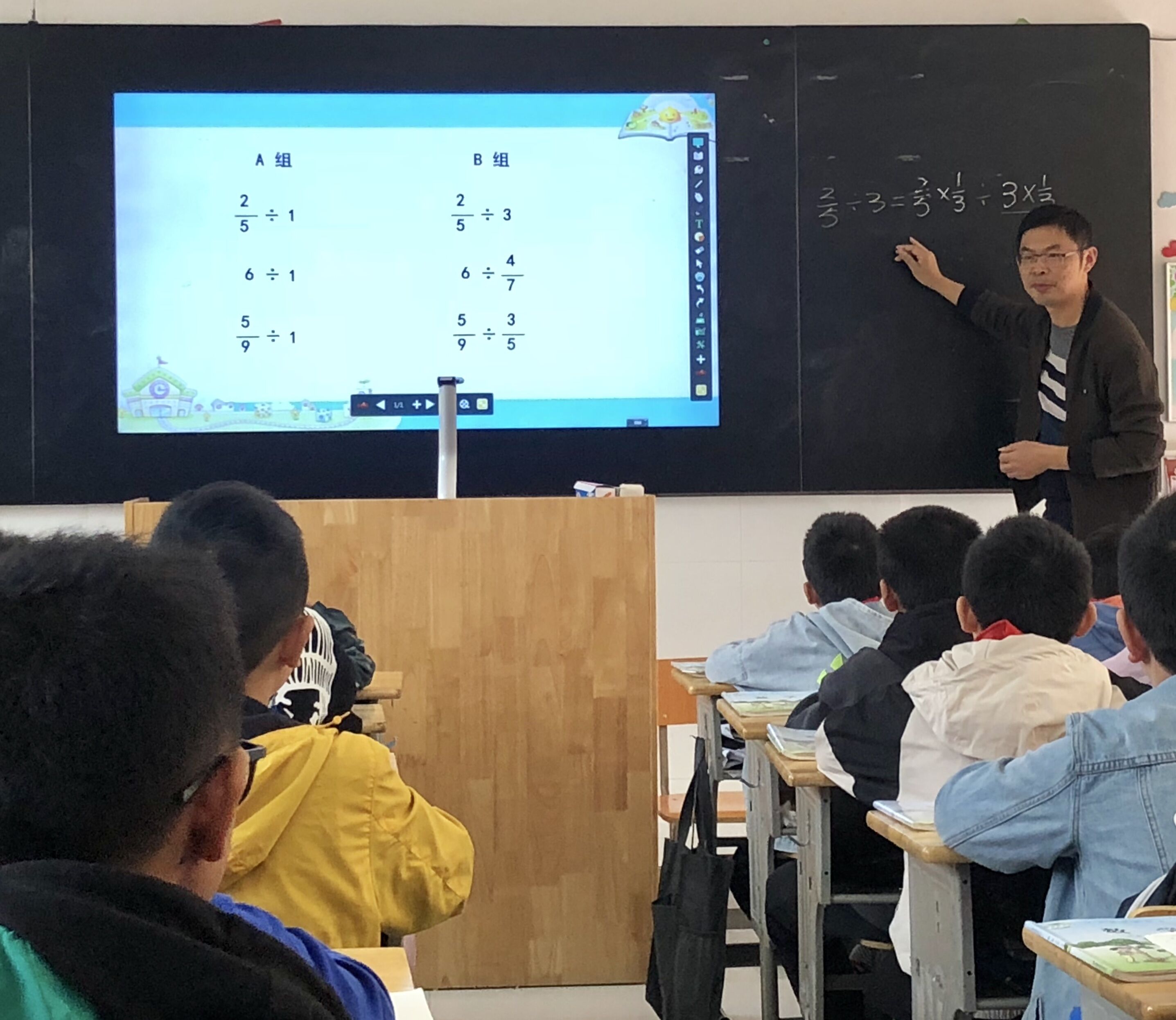 西校区刘智勇老师执教组内课《分数除法》 发布时间:2020-10-23 00:00:00 浏览次数: 次 【字体:小 大】 2020年10月22日刘智勇老师在六(16)班执教组内课《分数除法》。本节课,他引导学生根据商不变的规律,把分数除法的知识点:分数除以整数、整数除以分数、分数除以分数进行了整体的学习,使学生体验到新知识与旧知识之间的联系,取得了较好的学习效果。 分享到: 【打印正文】