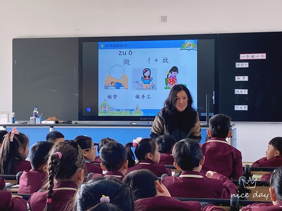 3月24日上午第一节课,吴小琴老师在阶梯教室执教了一节一年级语文课——《一个接一个》。这篇课文是一首儿童诗,诗人用最接近儿童的语言表达简单的内心世界,全诗充满童趣。教学中,吴老师从孩子一天中所要做的事情入手,导入课文。在初读课文后,引导学生通过加一加、减一减、拆一拆的方法灵活识记各种结构的生字。设计“跳房子”的游戏让学生在快乐的游戏中巩固生字词。在学习课文第一小节时,吴老师让学生联系生活实际感受踩影子的快乐,要回家的难过,以及做各种各样的梦的有趣。用笑脸、哭脸等表情符号来表示不同的心情,符号形象直观,学生朗读时更到位。在生字教学中,选择“伴”和“样”两个结构一样但书写时容易混淆的字进行教学。让学生仔细观察找出两个生字的异同,把学习的权利交给学生。