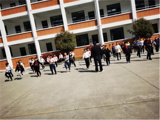 梅老师的课组织有序,课的开始部分学生们个个精神抖擞,充分活动各关节。