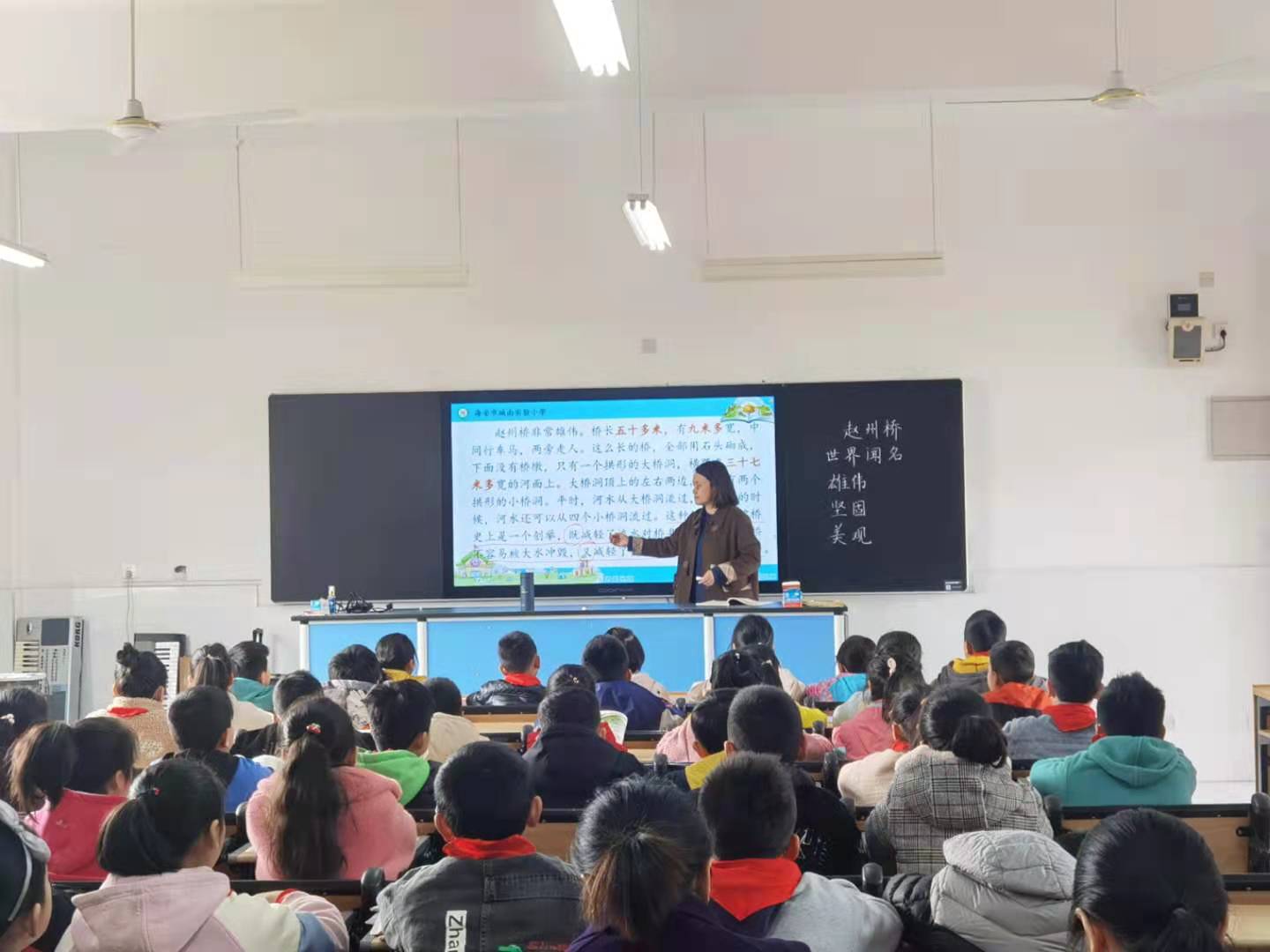 西校区杨洪老师执教校级课《赵州桥》 发布时间:2021-04-10 00:00:00 浏览次数: 次 【字体:小 大】 2021年4月7日上午,西校区杨洪老师执教了部编版三年级语文下册第1课《赵州桥》第二课时。杨老师紧紧抓住单元主线,巧设问题,精心引导,注重学生技能的教育。教学中,杨老师让学生进行有感情的朗读,引导学生在读中感悟,读中体验,让学生体会到了赵州桥雄伟、坚固以及美观的特点,并在真切体验中升华情感,在想象表达中运用语言。简简单单一堂课,杨老师切和,循循善诱,让学生在轻松快乐的氛围中学习语文。朴实、自然,充满激情,给听课的老师们带来了深深地思索与回味。 分享到: 【打印正文】