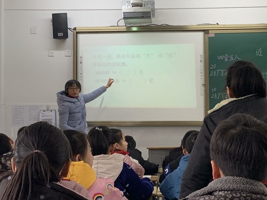 3月12日上午第三节课,许晓云老师在四17班开设组内研讨课《求近似数》,中数组全体数学老师参与听课评课活动。