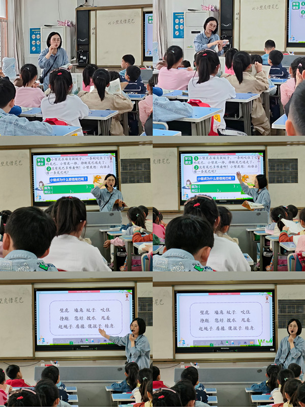 一年级徐晶晶老师执教校级课《小壁虎借尾巴》 发布时间:2021-05-26 00:00:00 浏览次数: 次 【字体:小 大】 《小壁虎借尾巴》是一年级下册的一篇充满童真童趣的课文。小壁虎借尾巴的过程其实也是它的成长过程。徐老师在处理本课生字时借用了大量学生感兴趣的图片和视频,将平面的知识转化为生动的展示,同时从学生已知的入手推进到未知的知识。整节课安排流畅、环环相扣,学生专注认真、兴趣浓厚,获得了很好的教学效果。 分享到: 【打印正文】