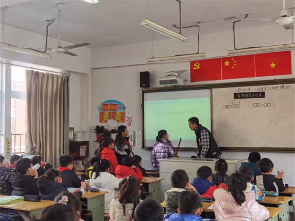 三年级下册教材中安排了两位数与11相乘的巧算、头同尾合十的乘法巧算的教学,在计算类课堂中属于深受师生欢迎的探究型内容。3月11日,三年级数学教研组的老师们齐聚三(10)班教室,观摩罗维旭老师执教的《有趣的乘法计算》一课。