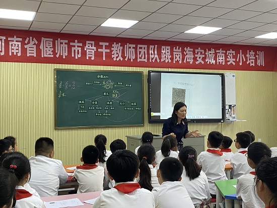 五年级数学肖晶老师执教展示课《复习分数》 发布时间:2021-06-13 00:00:00 浏览次数: 次 【字体:小 大】 2021年6月9日上午第一节课,肖晶老师在阶梯教室,为河南省偃师市骨干教师团队上了一节公开课《复习分数》。课前,肖老师先让孩子们对“分数的意义和性质”、“分数的加法和减法”这两个单元的内容进行了复习和整理,课堂上孩子们先互相交流了自己知识整理的心得和体会,然后肖老师以带着孩子们一起从分数的意义出发,将两个单元的知识点进行了结构化的梳理,学生在知识的梳理过程中,充分感受到知识之间的联系,同时对分数的认识更深刻、更全面。 分享到: 【打印正文】