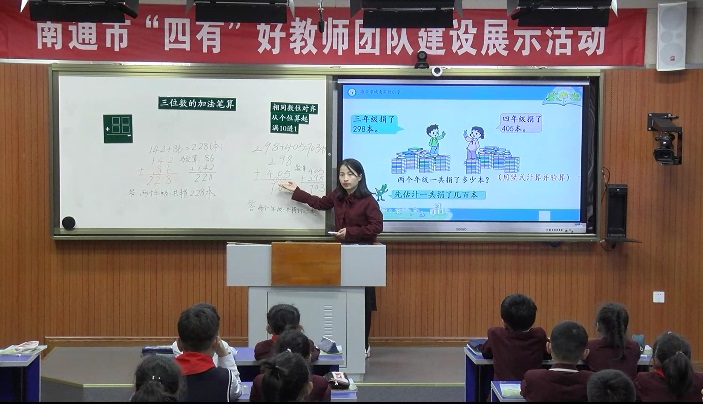 三位数的加法笔算 发布时间:2021-06-21 00:00:00 浏览次数: 次 【字体:小 大】 5月20日,秦苏丹老师在录播教室执教了校级课《三位数的加法笔算》,本节课秦老师情境引入,唤醒学生过往经验,学生经历二位数+三位数,到三位数+三位数,充分理解竖式计算的算理和方法,帮助学生有效进行知识迁移,建立了竖式计算的模型,系统的架构了知识之间的联系。 分享到: 【打印正文】
