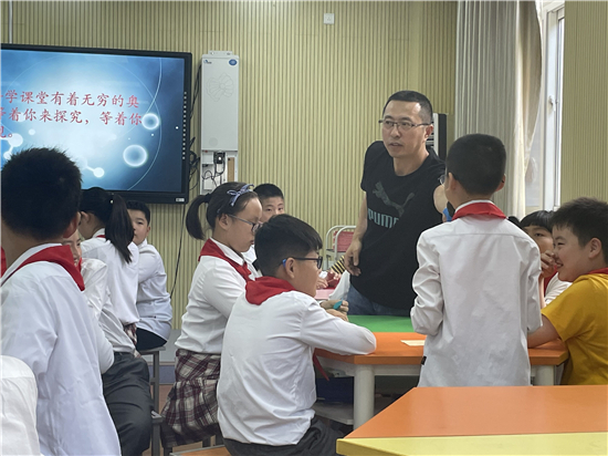 张小荣老师执教科学教研课《玩转纸陀螺》 发布时间:2021-09-24 00:00:00 浏览次数: 次 【字体:小 大】 9月16日上午第二节课,张小荣老师在2021年优秀青年干部培训班岗位岗位实践活动课中执教了一节五年级的科学教研课,张老师以谜语导入,学生动手玩陀螺,激发学生的学习兴趣,通过学生自主探究、动手实践、展示成果,让学生充分理解通过增大惯性,来增加陀螺的转动时间。学生在玩中学,学中悟,既保护了儿童的好奇心、激活了求知欲,调动起学生对科学的兴趣与热情,又在科学探究中培养了学生动手操作和表达概括的能力。 分享到: 【打印正文】