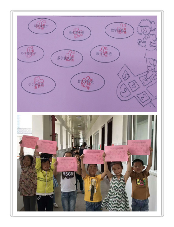 告诉你们吧!今年我们一年级语数学科能力评定是在“玩中学、玩中评”。我们手上拿的是老师为我们小朋友设计的评价卡,内容可真丰富!嘻嘻,好期待!