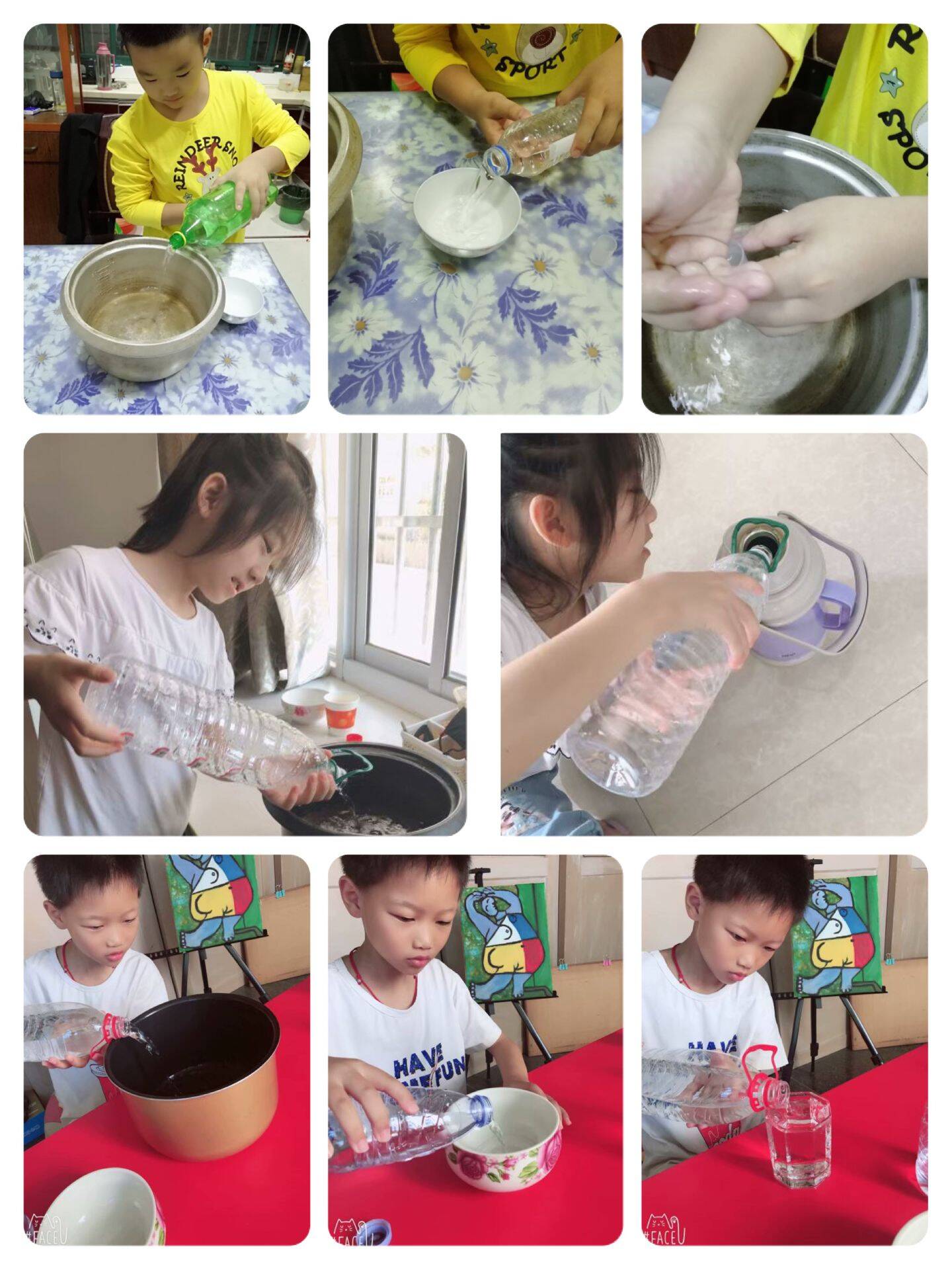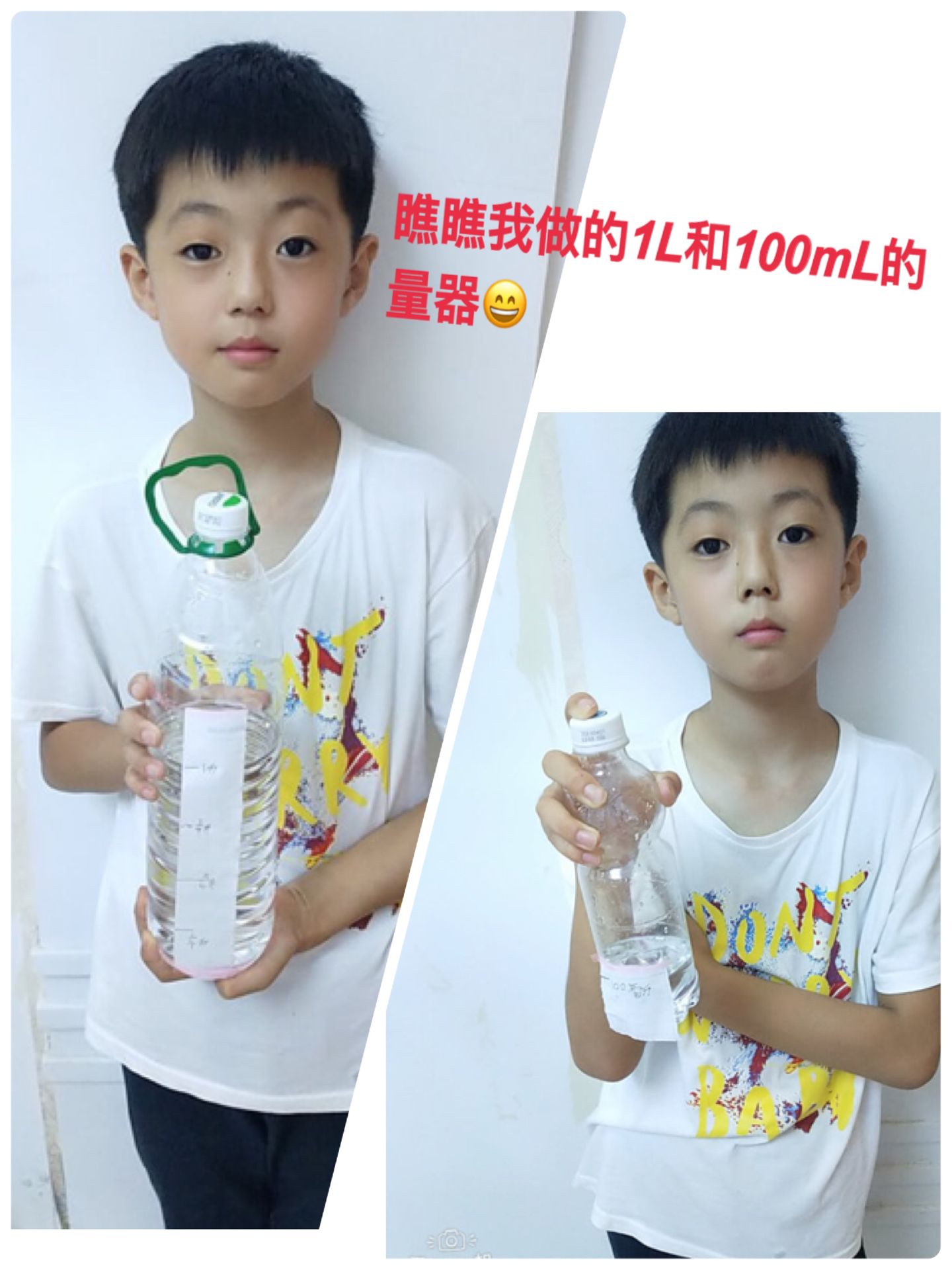 做1升、100毫升的量器;用自制的量器去估计身边其他容器的容量;一毫升的水有多少滴;玩杯琴……让孩子在实践中不断感受1升和1毫升的大小。