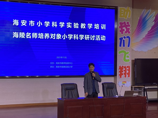 最后,海陵名师第二梯队培养对象、海安市教师发展中心科学研训员张小强为大家做了《实验教学——引领学生开启科学之门》的讲座。怎样的科学实验课堂才是成功的?张主任首先结合自身教学经验跟老师们分享了自己的心得体会,并围绕如何上好科学课展开指导。最后,他提出作为科学老师,我们有责任上好每一节科学课,让科学的教学变得更简单,学习更有效,真正成为学生的需要。