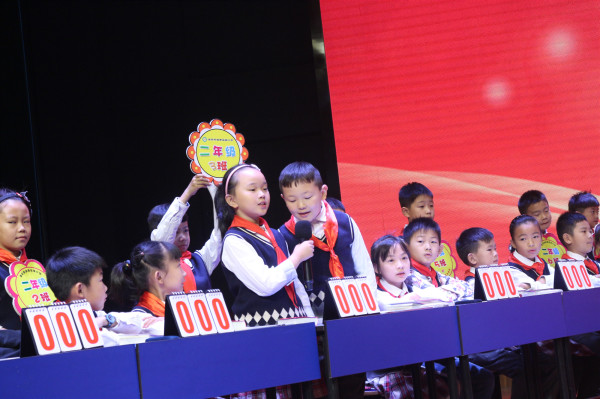 第二环节一结束,主持人开始报每个班的得分,下面小朋友的心情就像十五个吊桶打水——七上八下。报到自己班时,一个个都激动地站起来挥手欢呼,为台上的选手呐喊助威。