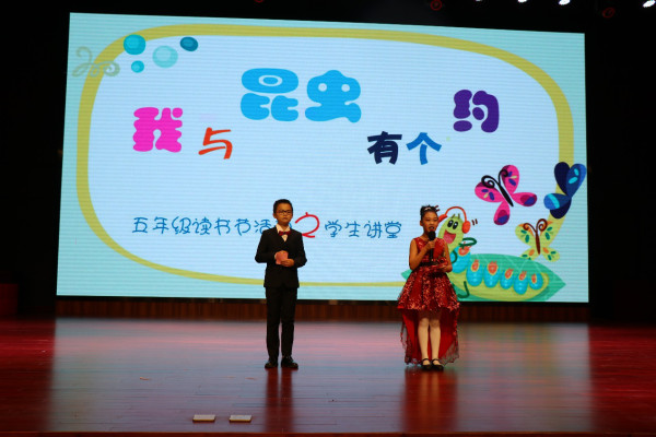 为了进一步巩固孩子们的研究成果,激发学生探知科学世界的热情。五年级各班在“口才与表现”课上进行了以“昆虫”为主题的研究成果汇报。学生把自己的研究报告做成PPT,在班级内进行宣讲,最终每班推选出一名同学参加年级部的展示。