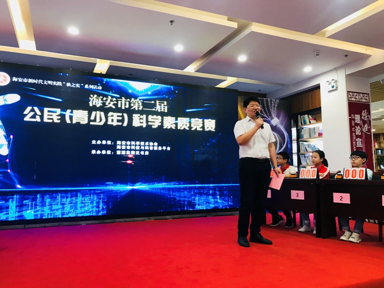 海安市科技局局长、科学技术协会主席孙祥作赛前讲话。他指出:科学技术是第一生产力,是经济社会发展的重要推动力量,科普是青少年健康成长的必由之路。他希望广大青少年热爱科学,学好科学,用好科学,用自己的聪明才智为新时代社会主义建设添砖加瓦,做适应时代发展的创新人才。