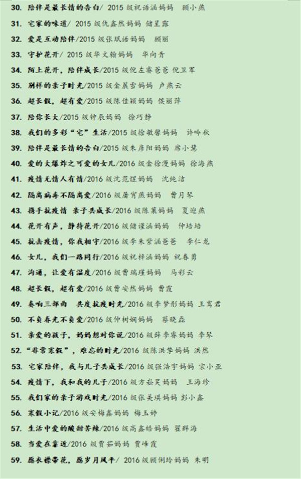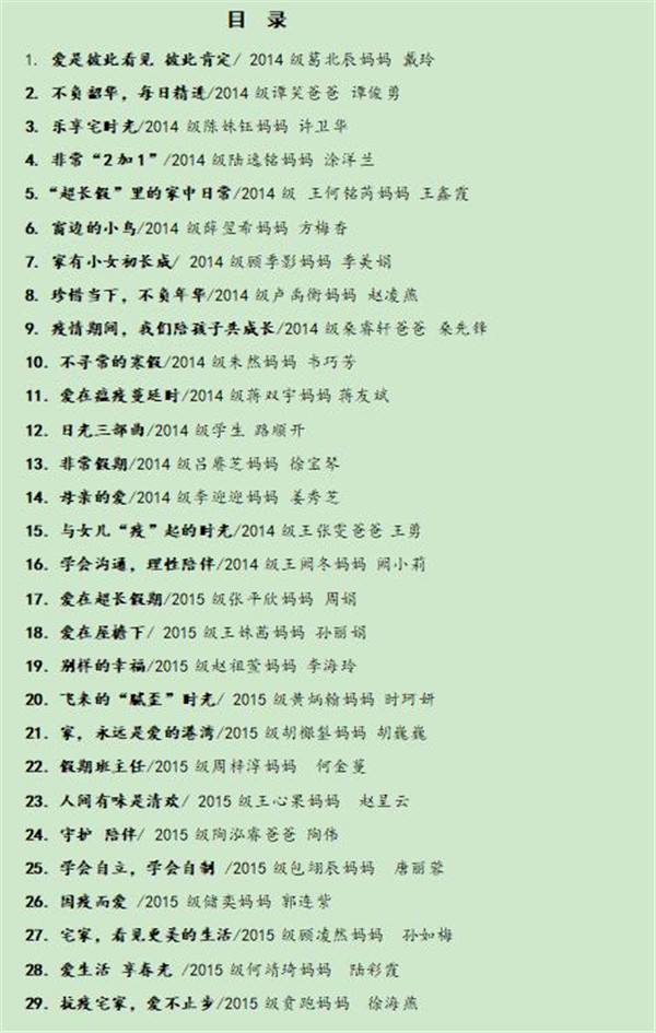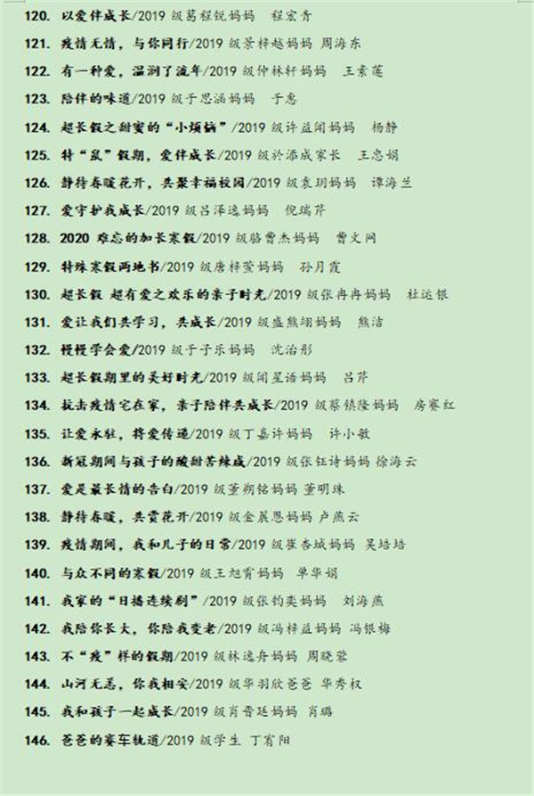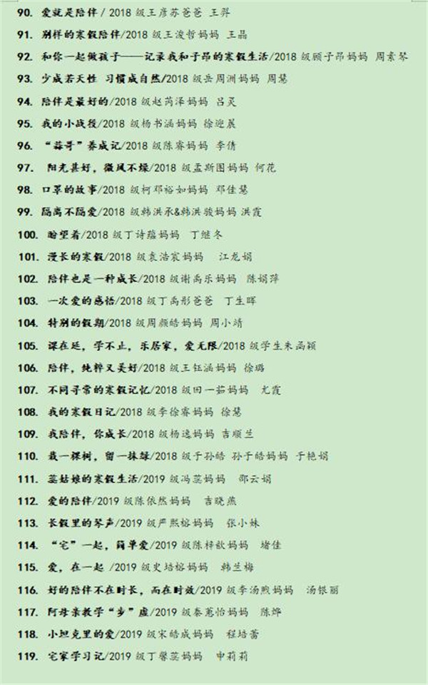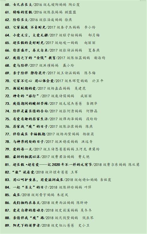 活动受到家长的积极响应,截止321日,全校共收到故事146篇。四世同堂的屋檐下,少年聆听祖辈故事,接受家风滋养;疫情隔离父亲身在异乡,书信传递爱的教育;二胎家庭,母亲机智艺术处理孩子吵闹纠纷;跟随网红视频,全家总动员享受蛋糕制作的快乐……宅家的时光里,有纷争嬉闹,也有欢声笑语。教育故事虽短小,但感情却真挚,家长和孩子彼此看见,彼此成长,共同享受“爱”的滋养。