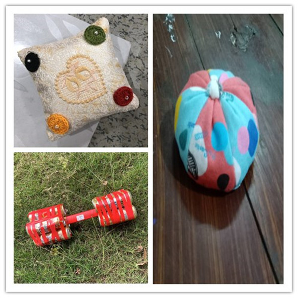 剪几块布头,装上豆子或沙子,制作成各种形状的沙包。一针一线,小心翼翼,缝出快乐的回忆……来来来,加入我们的战队,一起丢沙包吧。