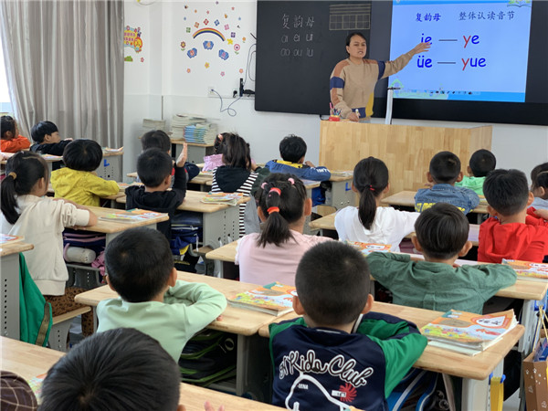 2019年10月18日上午,杨洪老师执教了一节组内教研课《ie üe er》。这一课的学习内容是认识三个复韵母“ie üe er”,以及由“ie üe”两个复韵母演变而来的整体认读音节,其中“er”的教学又是一个难点。教者从学情出发,循序渐进,突出重点,化解难点。在教者的引导下,学生自主从情境图中发现要学的韵母,自主创编儿歌记忆韵母。在学会韵母的基础上,教者创设情境,引出整体认读音节,由旧知到新知,整节课环环相扣,不仅让学生学得轻松,而且充分调动了学生学习的积极性,发挥了学生的想象力。