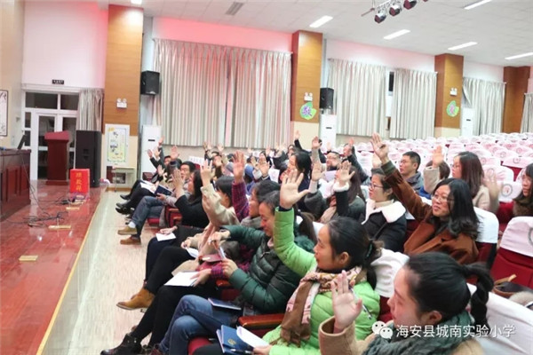 本次选举大会,应到党员46人,实到党员43人,符合大会要求。会上,学校党支部书记许卫兵宣读了《关于同意中共中央海安县城南实验小学支部委员会换届选举及下届委员会候选人建议人选的批复》(海委教【2017】23号),带领大家学习了《中国共产党基层组织选举工作暂行条例》,向全体党员同志介绍了6名候选人的简历。