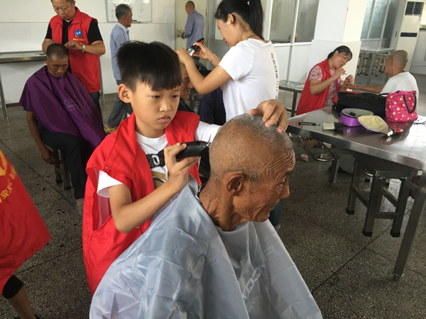 2017年暑假,进入三伏天,持续高温笼罩江海大地,他不惧酷热,连续七周每周参加敬老院爱心助老,在做好服务老人的同时,认真地看叔叔阿姨们为老人理发,时不时地咨询,默默地思考,现在他已经基本掌握理发技巧,参加助老活动时,能够独立娴熟的帮一些老人理发;8月,烈日当空,骄阳似火,参加优秀贫困生信息核查走访,走遍了海安城乡,不断深入贫困优秀生家中实地了解家庭情况,再去邻居和村委会进行信息核查确认,用脚步丈量着海安大地,汗水湿透衣背,但他不知疲惫,没有丝毫厌倦和退缩,坚持到夜深了才完成当天的众多的核查走访计划,为“520爱在身边关爱优秀贫困生”助学款的顺利发放提供了可靠保证,还多次拿出零花钱帮助开发区贫困家庭实现“微心愿”。