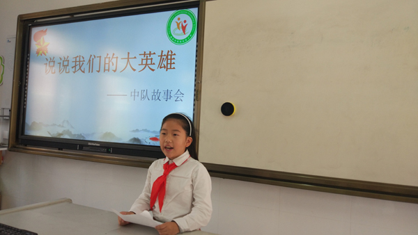 三年级的队员在辅导员的组织下开展了“说说我们的大英雄”主题班会活动。队员们纷纷上台向大家讲述自己心目中的大英雄,革命烈士黄继光、抗战英雄董存瑞、开国元帅彭德怀……一个个鲜活的英雄故事回响耳畔。大家在这一个个故事中感觉到当今幸福生活之不易,陶冶了爱国情怀。