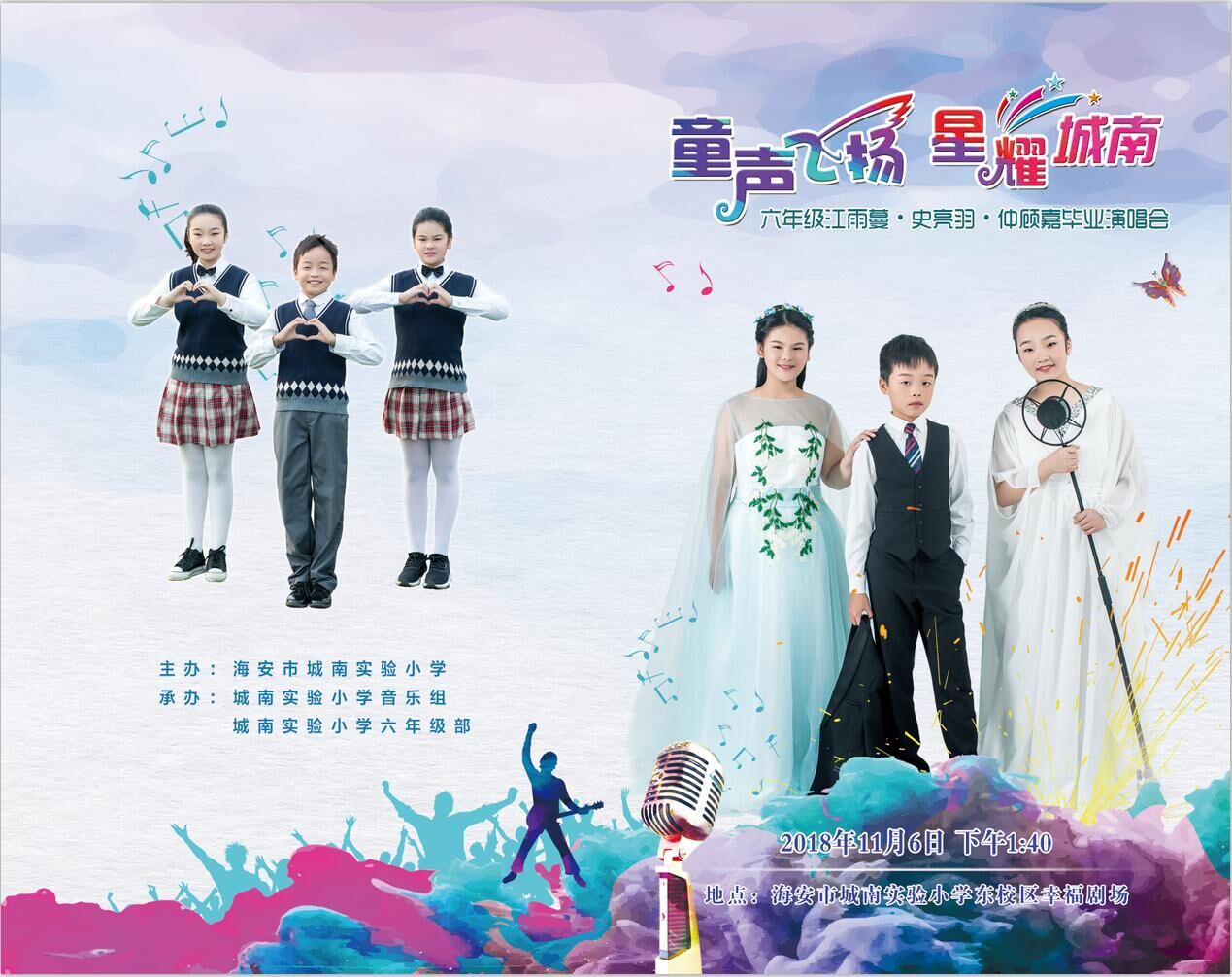 下午3点左右,海安市城南实验小学校园内星光闪耀,童声飞扬。德育联盟学校代表、城南实小家委会成员和六年级全体师生相聚幸福剧场共同欣赏首届毕业生个人演唱会。六6班的史亮羽和江雨蔓、六3班的仲顾嘉三位同学用歌声向自己的成长年轮致敬,用歌声向学校的全体老师献礼,用歌声表达对城南深深地依恋!