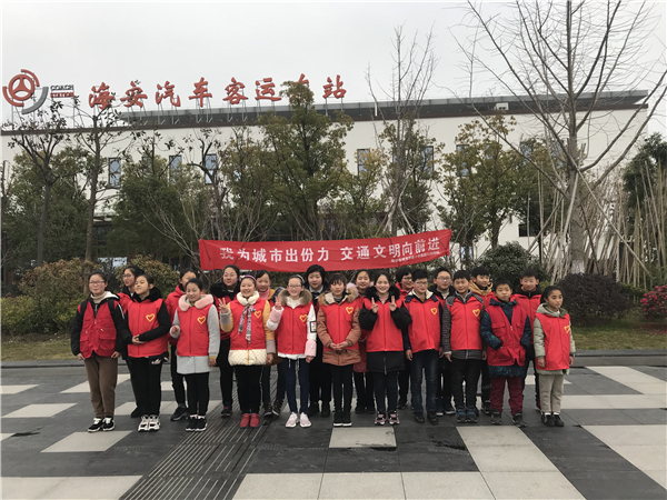 3月3日,迎着早春的第一缕阳光,六8中队的小志愿者们迈着矫健的步伐,来到了海安市汽车客运东站,开始了他们新一年的公益行动。