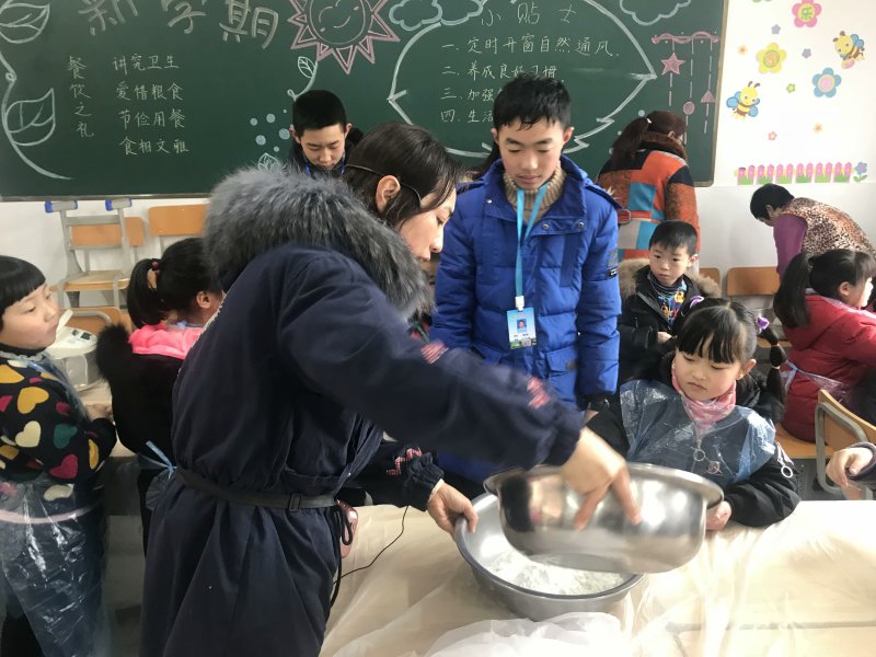 最让孩子们兴奋的还是下午的动手实践活动——做汤圆,吃汤圆了。一年级、四年级部分班级的孩子们满怀激动的心情,撸起袖子,戴上手套,跟着家长义工们学做起了汤圆。西校区还邀请了中学的哥哥姐姐一起闹元宵。一只只小手又搓又捏,有模有样。虽然大多数孩子都是第一次做汤圆,可经过几次尝试后,做出来的汤圆也圆润饱满。珠浮浊水,一碗汤圆暖心间。“吃汤圆喽!”随着老师的一声宣布,孩子们安静地等着家长义工和哥哥姐姐给大家盛汤圆。听着那首熟悉的《卖汤圆》,慢慢品,细细尝。自己的劳动成果,当然越品越香,越品越幸福啦!