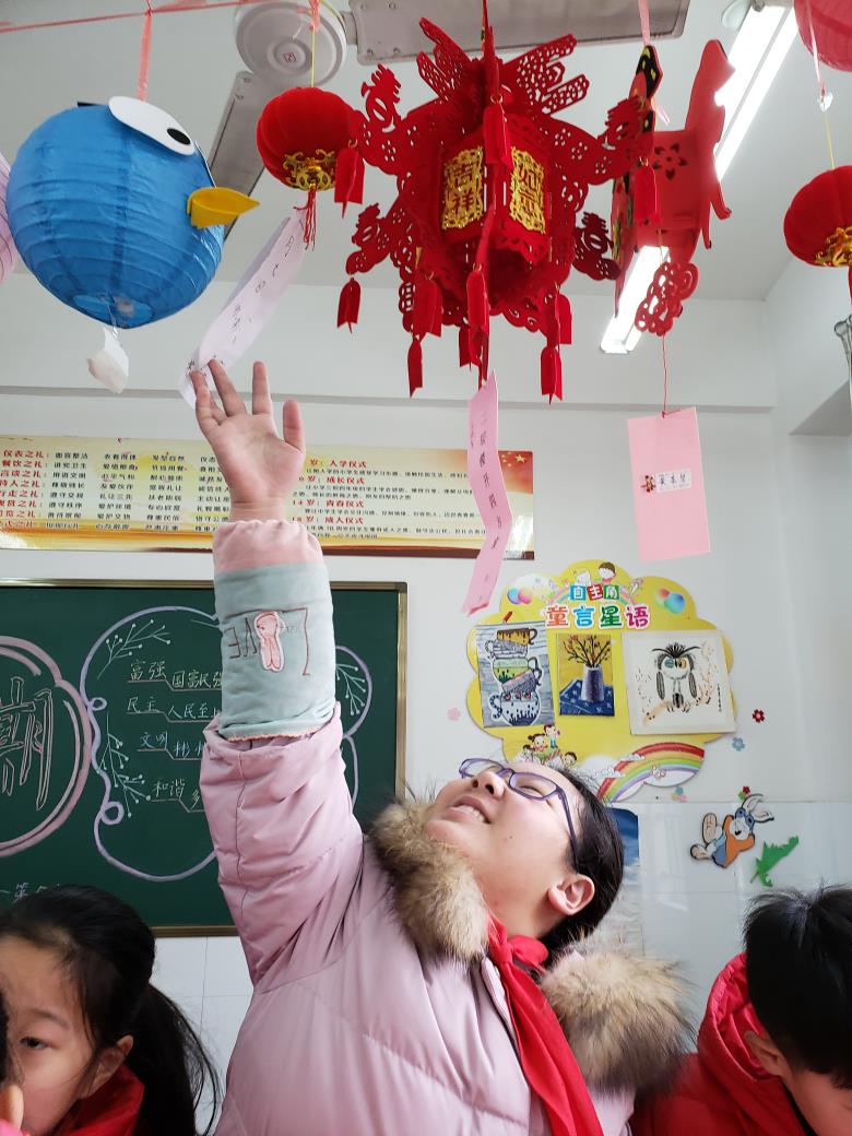 花灯百队儿童走。瞧,东西校区一年级走廊里各式各样的灯笼,造型独特,红艳艳的压岁包灯笼,萌萌哒的小猪佩奇灯笼,竖着长耳朵的兔子灯……可都是宝贝们在家长的指导下精心制作成的。中午一吃完饭,孩子们就在老师的组织下文明有序地赏起了花灯,看着那一盏盏制作精美的花灯,孩子们啧啧赞叹。