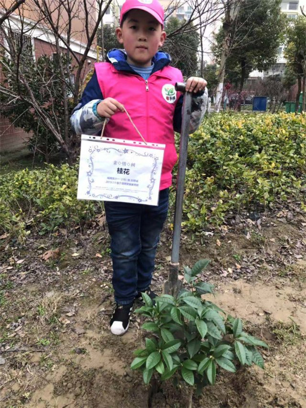 3月9日,一(13)班梅子公益分队的孩子们来到高新区三塘村,参加“大手牵小手 我们共成长”植树活动。他们还与家长一起查阅资料,制作了各种育树卡、心愿卡。