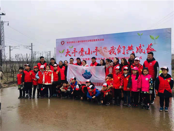 3月10日上午,三(8)中队的队员们来到了高新区三塘村参加了该社区举办的“大手牵小手,我们共成长”公益植树活动。自入校来,三(8)中队的队员们已经连续三年参加公益植树活动了!