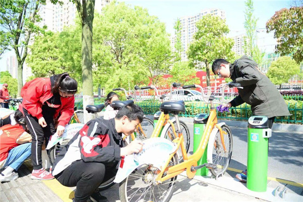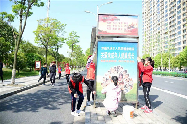 4月27日,六(1)中队的队员们来到高庄路附近,开展了“擦亮城市窗口,弘扬志愿精神,争做文明小公民”的幸福公益活动。他们擦洗了好人牌、广告宣传牌、公交站台座椅、公共自行车,那鲜红的小志愿者服务马甲成了文明城市建设中一道靓丽的风景。