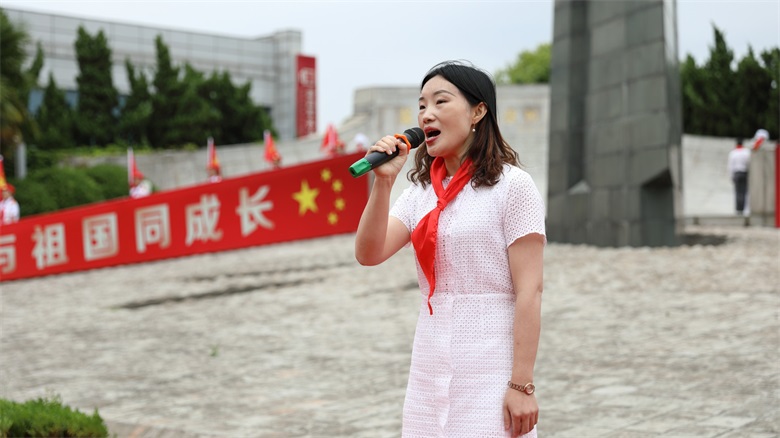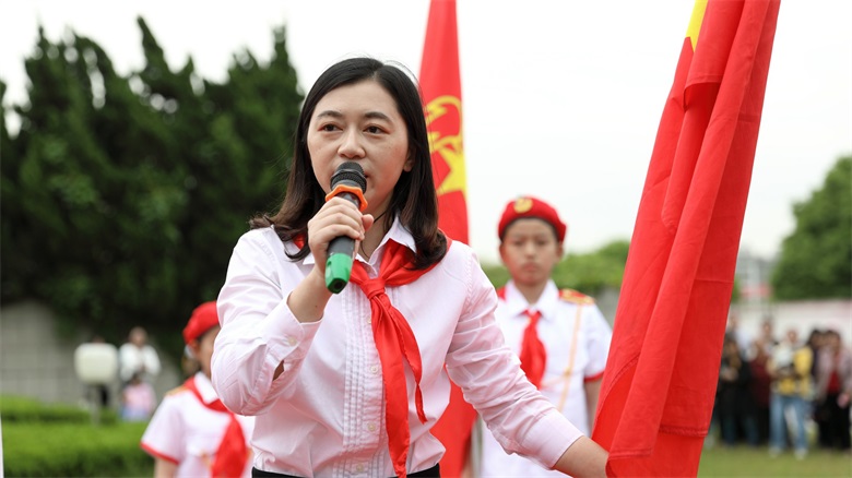 最后,全体少先队员在顾春芹主任的带领下呼号,声音虽稚嫩,却充分表达了队员们为共产主义事业而奋斗的坚定决心。