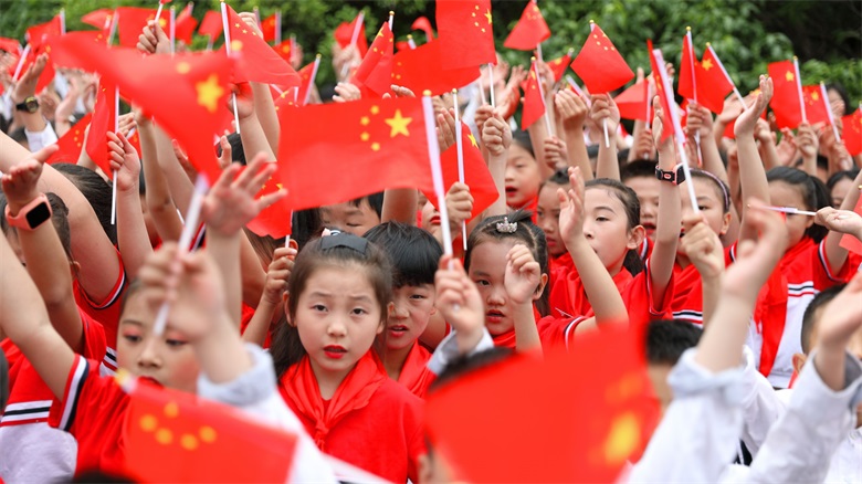 党国团队四旗传递让孩子们感受到身为中华儿女的幸福感受到党组织、团组织对少年儿童成长的关心。