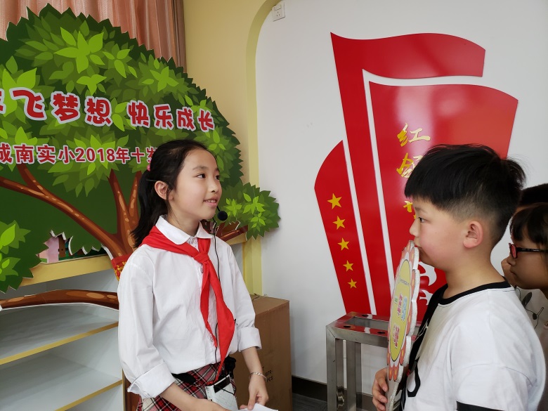一年级的主人吉红云宣读组建一年级新中队的决定并宣读新队员代表名单。五年级的队员给一年级的小朋友戴上了鲜艳的红领巾。瞧,那一张张充满朝气的笑脸,他们是共产主义的接班人!