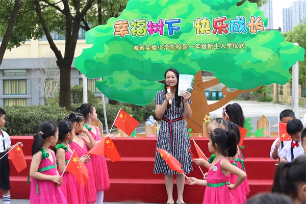 幸福园里幸福树,幸福树下幸福娃。入学仪式上,秦美娟、高小娣、周正娟三位副校长分别为三个校区的孩子们致辞,把诚挚美好的祝福送给城南新苗们,祝愿孩子们成为文明有礼、向上向善的城南娃。