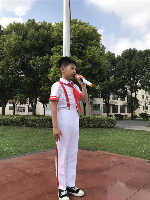 来自六12中队的蒋双宇同学是本周的光荣升旗手,他用一首诗朗诵《扬帆起航》带大家领略了祖国70年来的沧桑巨变。从青藏高原到南海诸岛,从大漠塞北到烟雨江南,泱泱中华,幅员辽阔,如一颗明珠闪耀在世界的东方。复兴号风驰电掣,大飞机直上云霄,探月工程寻访苍穹……新中国70年砥砺奋进,书写了一部又一部让世界为之震撼的发展史诗。