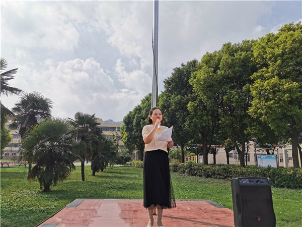 德育处主任姜金红做题为《牢记使命 振兴中华》的国旗下讲话。她叮嘱同学们:振兴中华是我们每个人义不容辞的职责,实现中华民族的伟大复兴是历史赋予我们这一代的神圣使命!勉励同学们虽然身处和平年代,但一定要发奋图强,居安思危,争做敢于有梦、勇于追梦、勤于圆梦的新时代好队员,力争不辱使命,当好祖国合格的建设者和接班人!