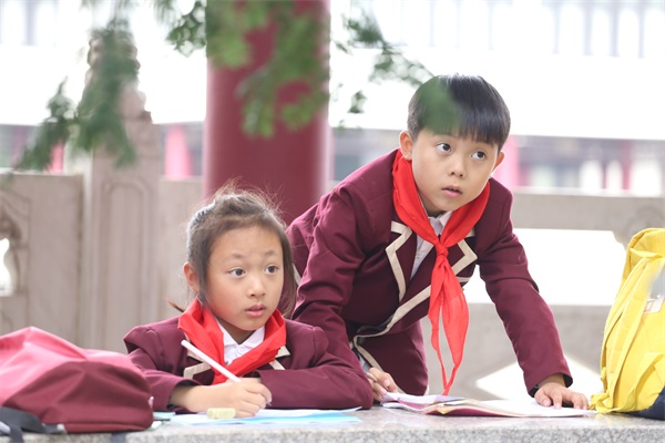 青草绿坪记录着美好的时光,蓝天白云见证着银铃般的欢笑。孩子们在浓浓秋意之中阅读大自然这本神奇的书,感受家乡浓郁的历史文化气息,体验集体生活的其乐融融,老师们觉得这样的时光甚好,这种教育的幸福感甚好,有一个声音在他们心底静静流淌——