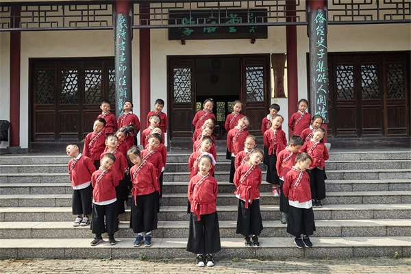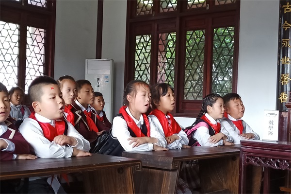 整个凤山书院,处处弥漫着一股儒雅的文化气息。瞧!庭院里一群小朋友排着整齐的队伍,也在齐声朗诵呢!