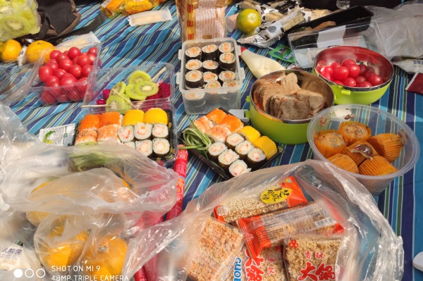 赏心乐事艳阳天。最后,大家席地而坐,大自然为餐桌,摊开各样的美味,分享秋游的乐趣。不论班级,均为知己,忘形笑语,闲谈古今。